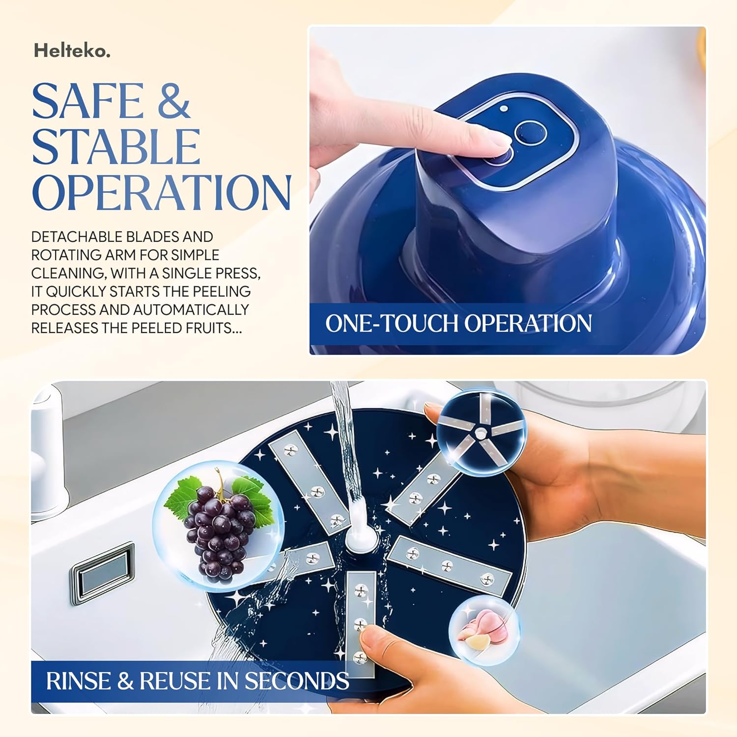 ⚡ EFFORTLESS ONE-CLICK PEELING: Say goodbye to tedious manual peeling. This electric grape peeler features a powerful 50W motor that removes skins from grapes, cherry tomatoes, and garlic cloves in just 10–20 seconds with a single button press.
